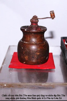 Bác sĩ Nghiệp vội chạy ra Cửa hàng bách hóa tổng hợp Mátxcơva tìm một cái cối xay tiêu quay tay bằng gỗ rất đẹp, nhưng chỉ hết có 7 rúp. Số tiền còn lại, Bác Tôn đã giao trả lại tất cả cho Chính phủ Liên Xô. Thế là chiếc cối xay tiêu đã trở thành kỷ vật của ngày hôm nay trong hoàn cảnh ấm áp nghĩa tình như thế.