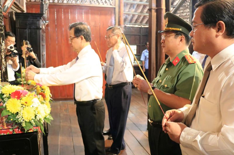 Trong không khí trang trọng của buổi lễ, tại Đền thờ Bác Tôn, đồng chí Lê Hồng Quang – Bí thư tỉnh ủy An Giang dẫn đoàn lãnh đạo Tỉnh ủy, Hội đồng nhân dân, Ủy ban nhân dân, Ủy ban mặt trận tổ quốc Việt Nam, cùng các sở, ban ngành, đoàn thể cấp tỉnh, bà con thân tộc Bác Tôn đã thành kính làm lễ dâng hương, dâng hoa, dâng lễ vật tưởng niệm Chủ tịch Tôn Đức Thắng, thay mặt cho toàn thể đồng bào, chiến sĩ và nhân dân An Giang, bày tỏ lòng tri ân và biết ơn vô hạn đến với Bác, nguyện tiếp tục phấn đấu noi theo tấm gương, đạo đức ngời sáng của Bác, một lòng đoàn kết, quyết tâm thực hiện tốt mọi nhiệm vụ, đưa quê hương An Giang ngày càng phát triển phồn vinh, nhân dân An Giang có cuộc sống ấm no, hạnh phúc.
